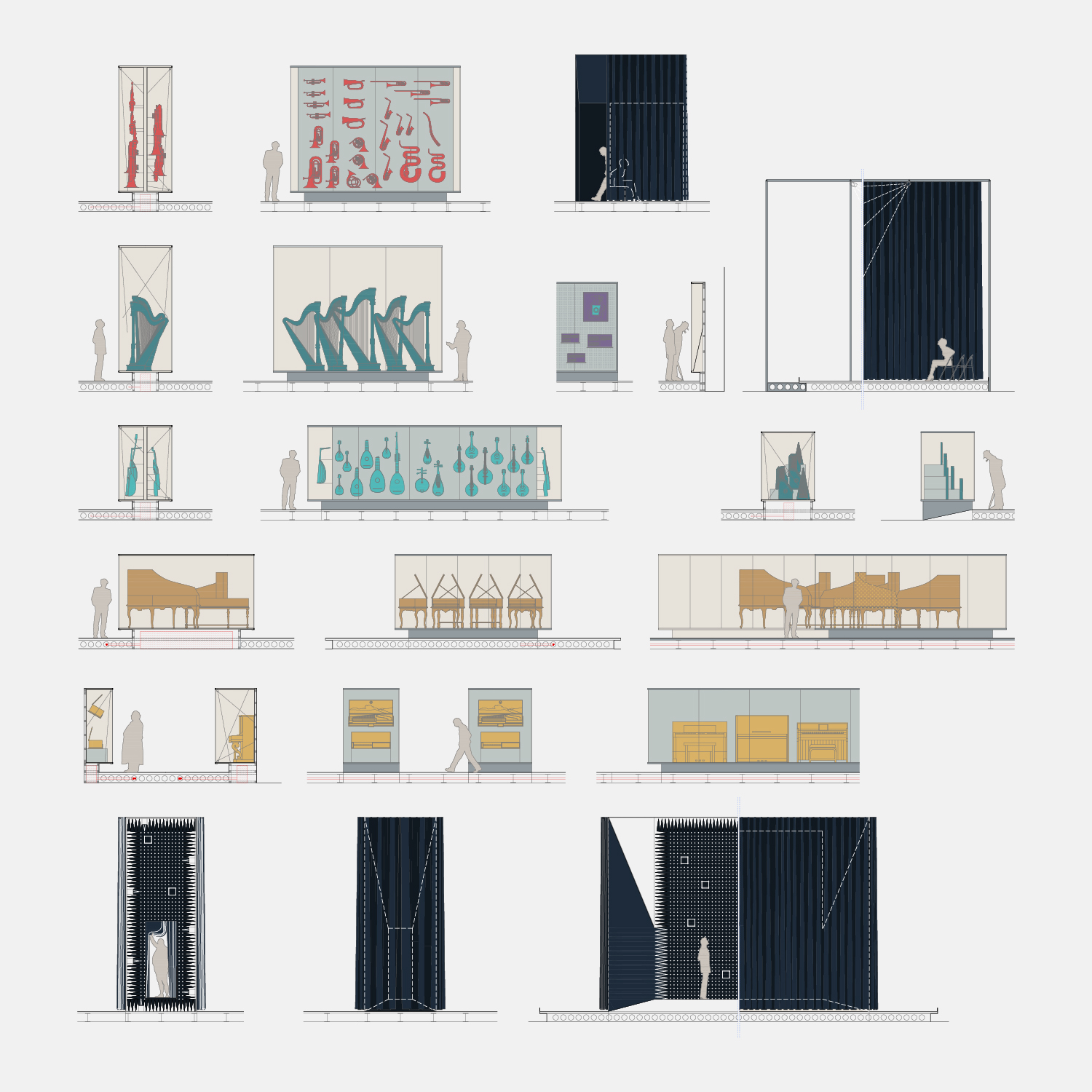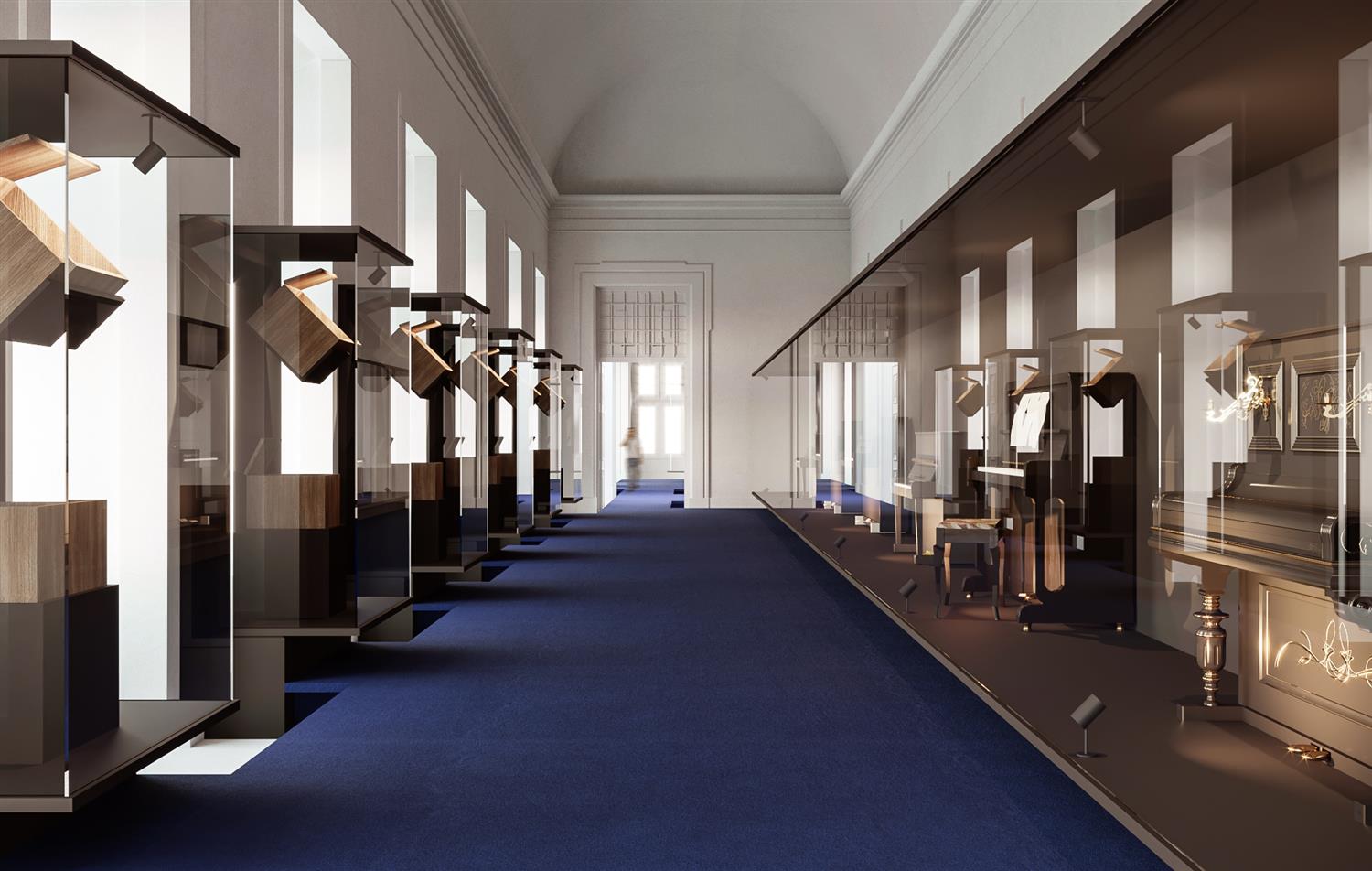 Visitors first encounter keyboard instruments, then progressively move through instruments that require the performer’s direct action in producing sound and concludes with a voice resembling a human instrument.